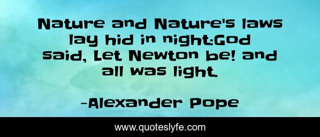 This page presents the quote "Nature and Nature's laws lay hid in night:God said, Let Newton be! and all was light.". Author of this quote is Alexander Pope. This quote is about light, nature, god, newton, science, laws,.