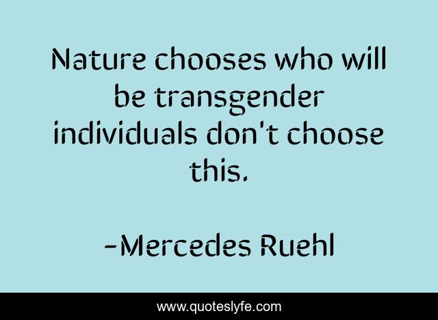 "Mercedes Ruehl Quotes." Quoteslyfe.com, 2025. Tue. 09 Dec. 2025. <https://www.quoteslyfe.com/quote/Nature-chooses-who-will-be-transgender-individuals-292483>.