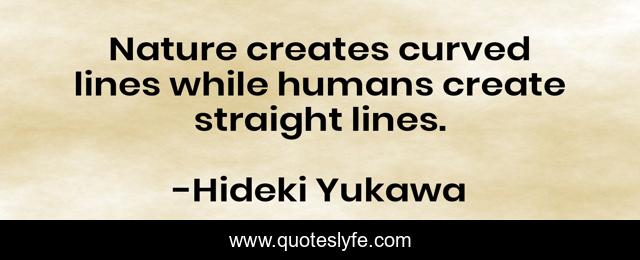 This page presents the quote "Nature creates curved lines while humans create straight lines.". Author of this quote is Hideki Yukawa. This quote is about nobel-laureate, nature, science, humans, lines, naturalism,.