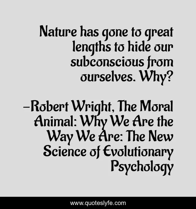 This page presents the quote "Nature has gone to great lengths to hide our subconscious from ourselves. Why?". Author of this quote is Robert Wright, The Moral Animal: Why We Are the Way We Are: The New Science of Evolutionary Psychology. This quote is about subconscious, human-nature, self,.