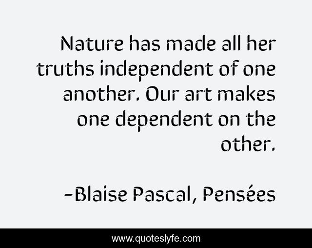 "Blaise Pascal, Pensées Quotes." Quoteslyfe.com, 2025. Sat. 06 Dec. 2025. <https://www.quoteslyfe.com/quote/Nature-has-made-all-her-truths-independent-72268>.