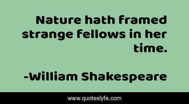 This page presents the quote "Nature hath framed strange fellows in her time.". Author of this quote is William Shakespeare. This quote is about strange, her, time,.