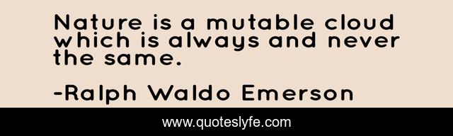 This page presents the quote "Nature is a mutable cloud which is always and never the same.". Author of this quote is Ralph Waldo Emerson. This quote is about cloud, same,.