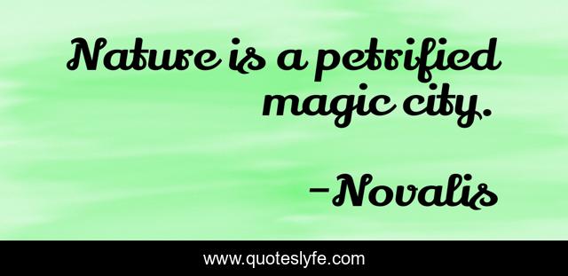 "Novalis Quotes." Quoteslyfe.com, 2025. Sat. 06 Dec. 2025. <https://www.quoteslyfe.com/quote/Nature-is-a-petrified-magic-city-292387>.