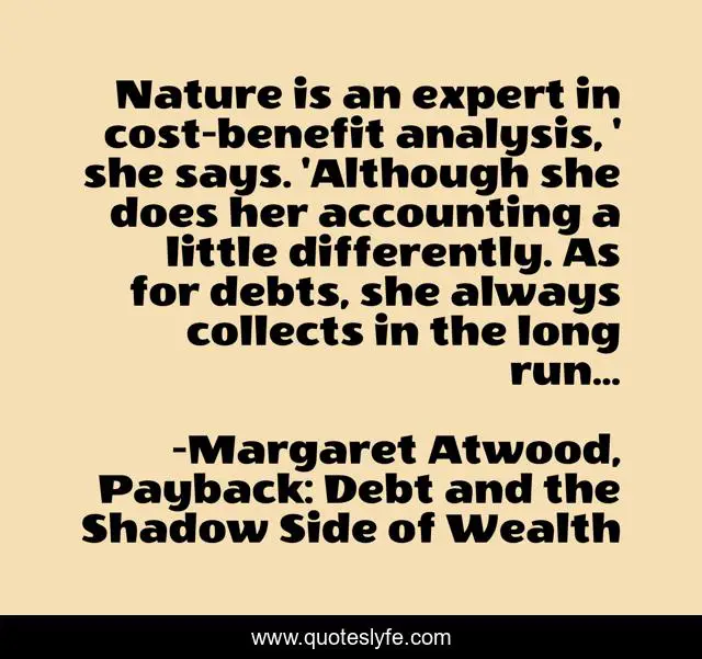 "Margaret Atwood, Payback: Debt and the Shadow Side of Wealth Quotes." Quoteslyfe.com, 2025. Sat. 06 Dec. 2025. <https://www.quoteslyfe.com/quote/Nature-is-an-expert-in-cost-benefit-72321>.