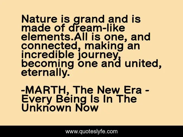 "MARTH, The New Era - Every Being Is In The Unknown Now Quotes." Quoteslyfe.com, 2025. Mon. 08 Dec. 2025. <https://www.quoteslyfe.com/quote/Nature-is-grand-and-is-made-of-180027>.