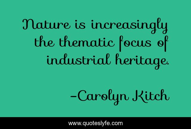 This page presents the quote "Nature is increasingly the thematic focus of industrial heritage.". Author of this quote is Carolyn Kitch. This quote is about industry, heritage, tourism, industrial-heritage, nature,.