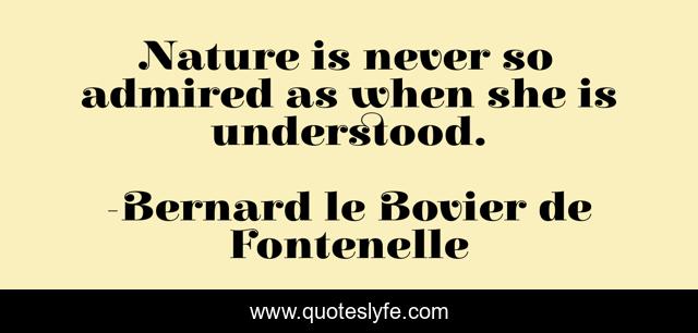 This page presents the quote "Nature is never so admired as when she is understood.". Author of this quote is Bernard le Bovier de Fontenelle. This quote is about science, nature, naturalism, understanding,.