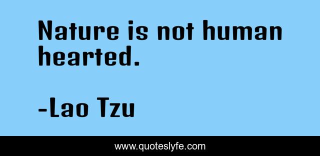 This page presents the quote "Nature is not human hearted.". Author of this quote is Lao Tzu. This quote is about hearted, human,.