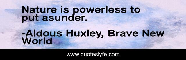 "Aldous Huxley, Brave New World Quotes." Quoteslyfe.com, 2025. Sat. 06 Dec. 2025. <https://www.quoteslyfe.com/quote/Nature-is-powerless-to-put-asunder-72653>.