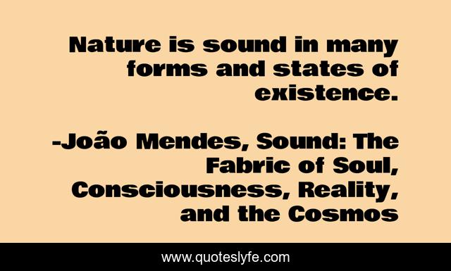 "João Mendes, Sound: The Fabric of Soul, Consciousness, Reality, and the Cosmos Quotes." Quoteslyfe.com, 2025. Fri. 05 Dec. 2025. <https://www.quoteslyfe.com/quote/Nature-is-sound-in-many-forms-and-93611>.