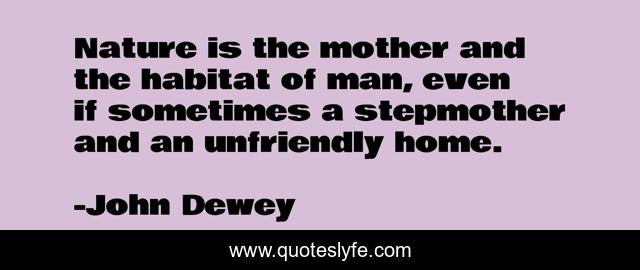 This page presents the quote "Nature is the mother and the habitat of man, even if sometimes a stepmother and an unfriendly home.". Author of this quote is John Dewey. This quote is about home, mother, environmental,.