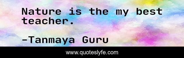 This page presents the quote "Nature is the my best teacher.". Author of this quote is Tanmaya Guru. .