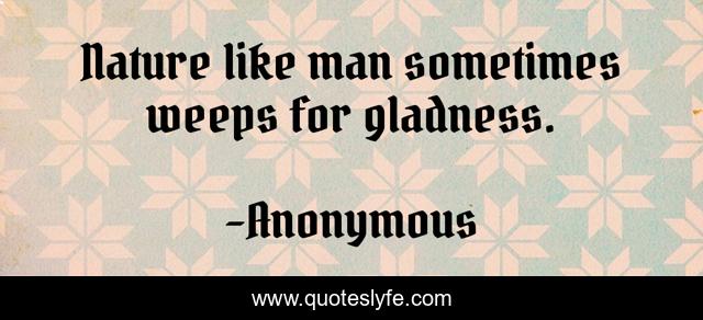 This page presents the quote "Nature like man sometimes weeps for gladness.". Author of this quote is Anonymous. .