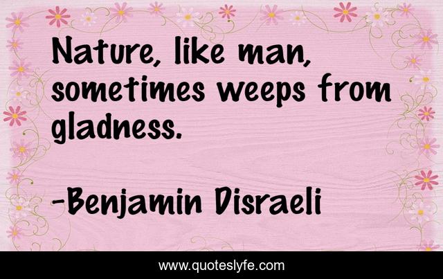 "Benjamin Disraeli Quotes." Quoteslyfe.com, 2025. Sat. 06 Dec. 2025. <https://www.quoteslyfe.com/quote/Nature-like-man-sometimes-weeps-from-gladness-292632>.