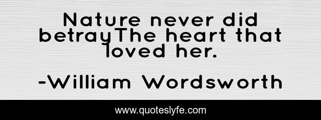 This page presents the quote "Nature never did betrayThe heart that loved her.". Author of this quote is William Wordsworth. .