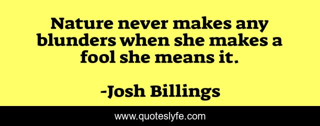 This page presents the quote "Nature never makes any blunders when she makes a fool she means it.". Author of this quote is Josh Billings. This quote is about fools, foolishness,.
