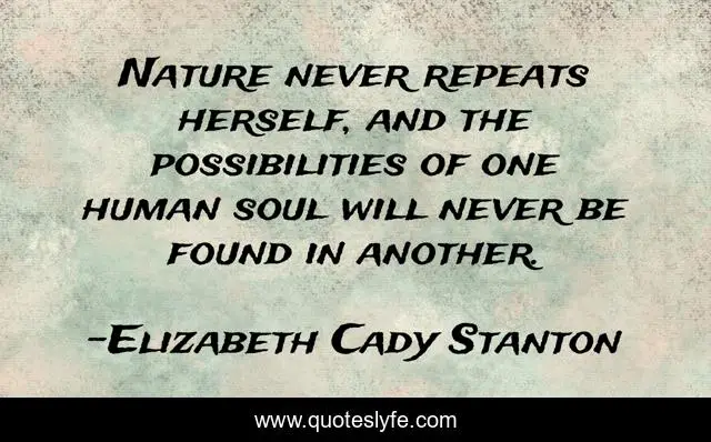 "Elizabeth Cady Stanton Quotes." Quoteslyfe.com, 2025. Mon. 08 Dec. 2025. <https://www.quoteslyfe.com/quote/Nature-never-repeats-herself-and-the-possibilities-185559>.