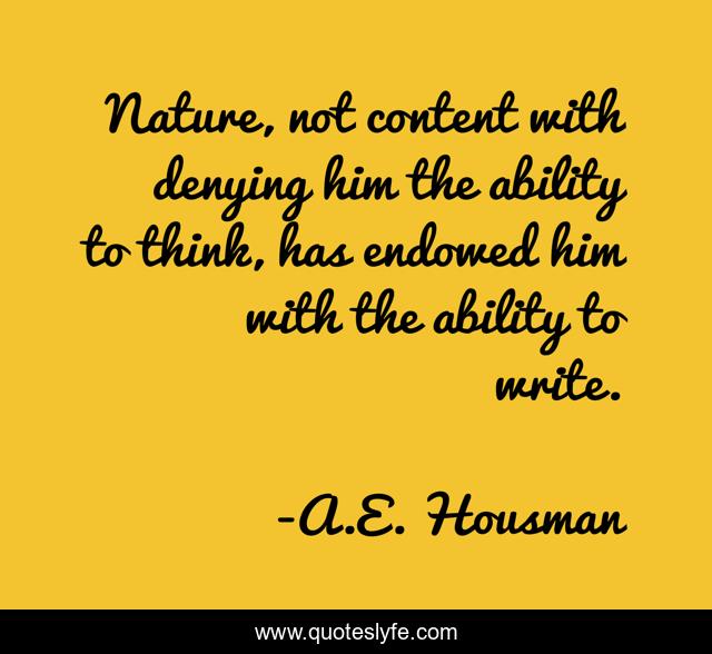 This page presents the quote "Nature, not content with denying him the ability to think, has endowed him with the ability to write.". Author of this quote is A.E. Housman. .