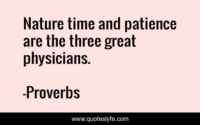 This page presents the quote "Nature time and patience are the three great physicians.". Author of this quote is Proverbs. This quote is about medicine, sickness,.