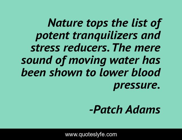 This page presents the quote "Nature tops the list of potent tranquilizers and stress reducers. The mere sound of moving water has been shown to lower blood pressure.". Author of this quote is Patch Adams. .
