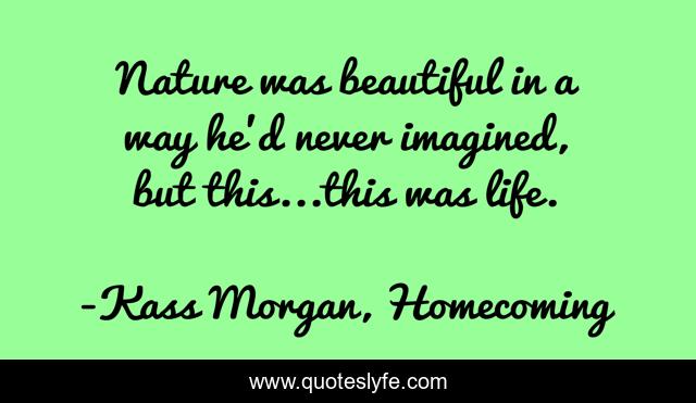 This page presents the quote "Nature was beautiful in a way he'd never imagined, but this...this was life.". Author of this quote is Kass Morgan, Homecoming. This quote is about life, beauty, nature,.