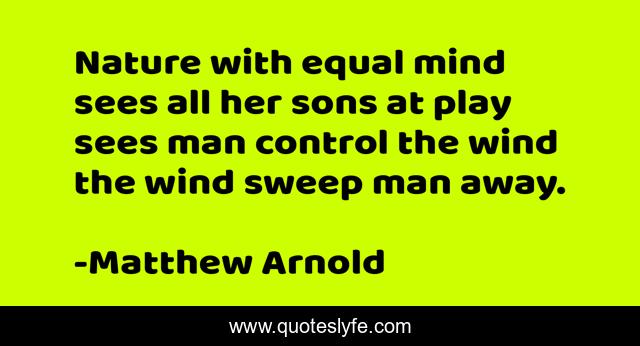 This page presents the quote "Nature with equal mind sees all her sons at play sees man control the wind the wind sweep man away.". Author of this quote is Matthew Arnold. .