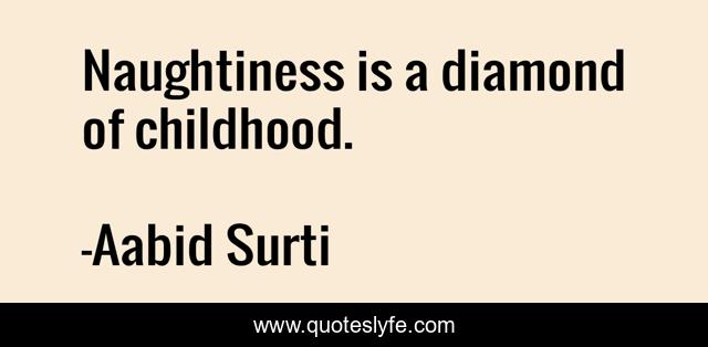This page presents the quote "Naughtiness is a diamond of childhood.". Author of this quote is Aabid Surti. .