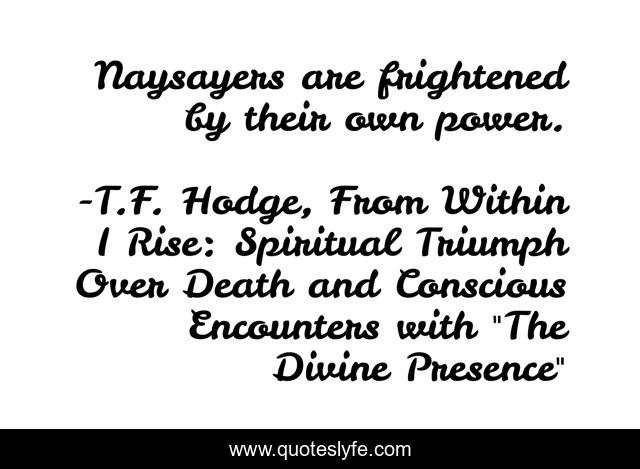 "T.F. Hodge, From Within I Rise: Spiritual Triumph Over Death and Conscious Encounters with "The Divine Presence" Quotes." Quoteslyfe.com, 2025. Sat. 06 Dec. 2025. <https://www.quoteslyfe.com/quote/Naysayers-are-frightened-by-their-own-power-88724>.