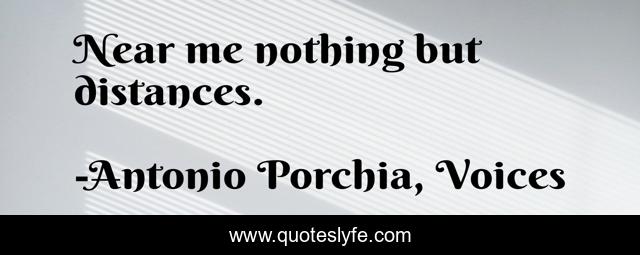 This page presents the quote "Near me nothing but distances.". Author of this quote is Antonio Porchia, Voices. .