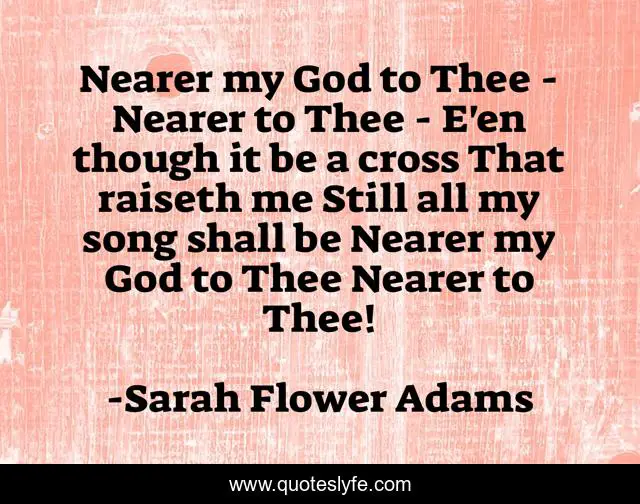 This page presents the quote "Nearer my God to Thee - Nearer to Thee - E'en though it be a cross That raiseth me Still all my song shall be Nearer my God to Thee Nearer to Thee!". Author of this quote is Sarah Flower Adams. .