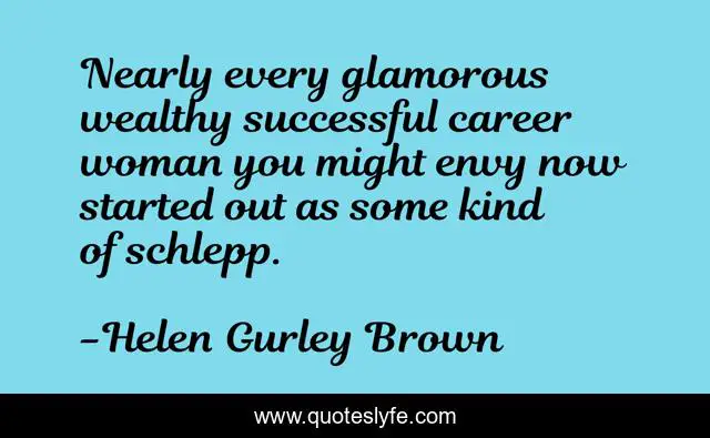 This page presents the quote "Nearly every glamorous wealthy successful career woman you might envy now started out as some kind of schlepp.". Author of this quote is Helen Gurley Brown. .