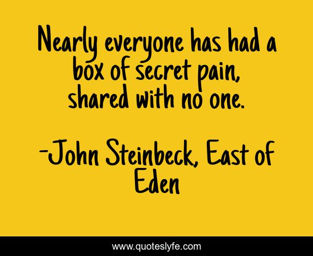 This page presents the quote "Nearly everyone has had a box of secret pain, shared with no one.". Author of this quote is John Steinbeck, East of Eden. This quote is about hidden, pain, secret,.