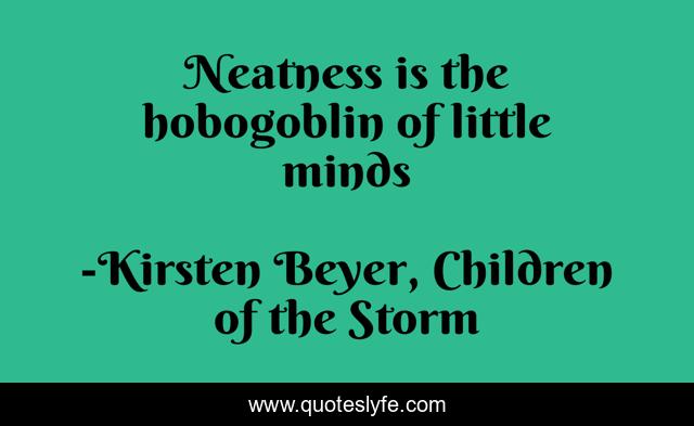 This page presents the quote "Neatness is the hobogoblin of little minds". Author of this quote is Kirsten Beyer, Children of the Storm. .
