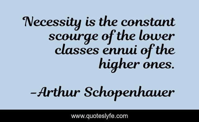 This page presents the quote "Necessity is the constant scourge of the lower classes ennui of the higher ones.". Author of this quote is Arthur Schopenhauer. This quote is about society, social,.
