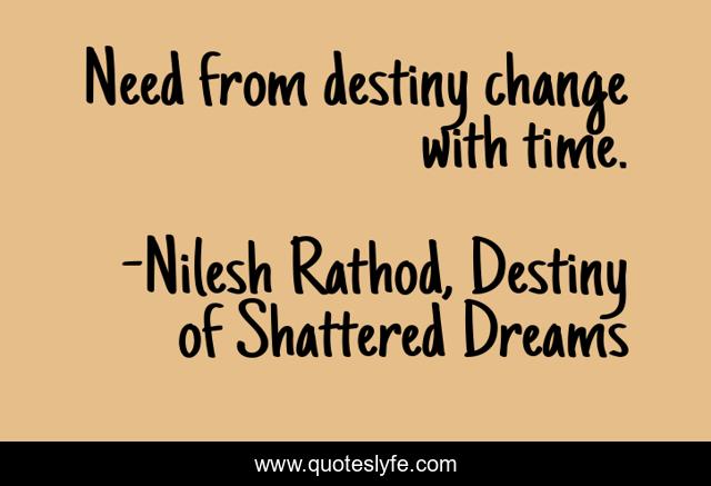 "Nilesh Rathod, Destiny of Shattered Dreams Quotes." Quoteslyfe.com, 2025. Fri. 05 Dec. 2025. <https://www.quoteslyfe.com/quote/Need-from-destiny-change-with-time-107071>.