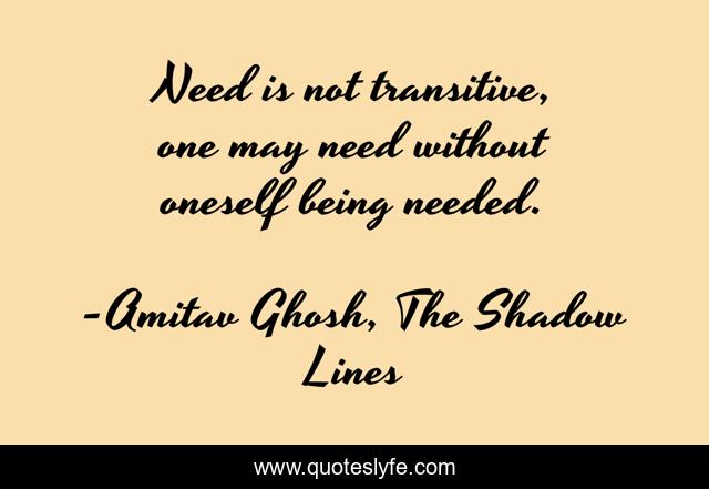 "Amitav Ghosh, The Shadow Lines Quotes." Quoteslyfe.com, 2025. Fri. 05 Dec. 2025. <https://www.quoteslyfe.com/quote/Need-is-not-transitive-one-may-need-240792>.