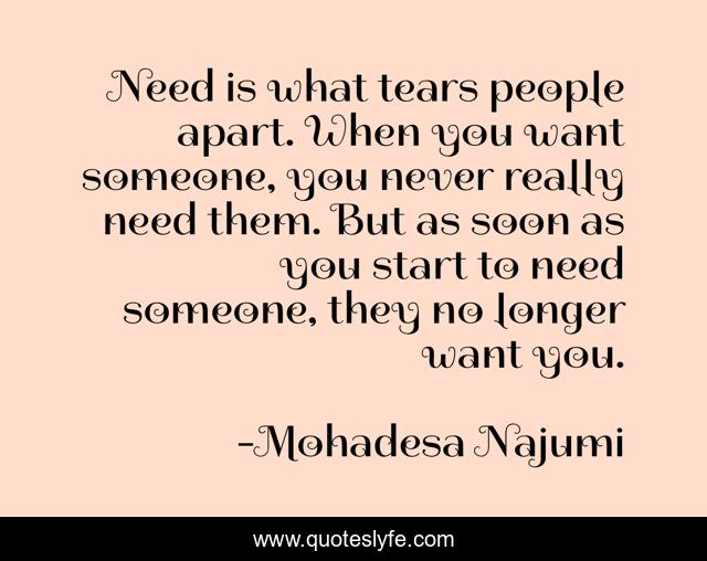 Need is what tears people apart. When you want someone, you never really need them. But as soon as you start to need someone, they no longer want you.