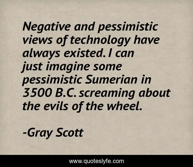 "Gray Scott Quotes." Quoteslyfe.com, 2025. Fri. 05 Dec. 2025. <https://www.quoteslyfe.com/quote/Negative-and-pessimistic-views-of-technology-have-320070>.