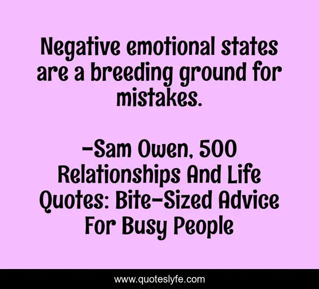 This page presents the quote "Negative emotional states are a breeding ground for mistakes.". Author of this quote is Sam Owen, 500 Relationships And Life Quotes: Bite-Sized Advice For Busy People. This quote is about fight-or-flight, negative-emotions, mistakes, emotions,.