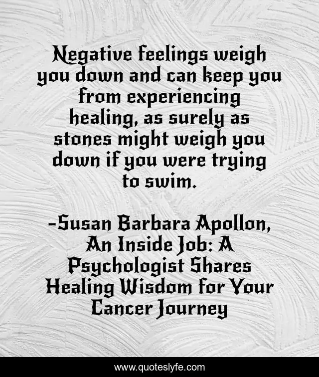 "Susan Barbara Apollon, An Inside Job: A Psychologist Shares Healing Wisdom for Your Cancer Journey Quotes." Quoteslyfe.com, 2025. Fri. 05 Dec. 2025. <https://www.quoteslyfe.com/quote/Negative-feelings-weigh-you-down-and-can-147562>.