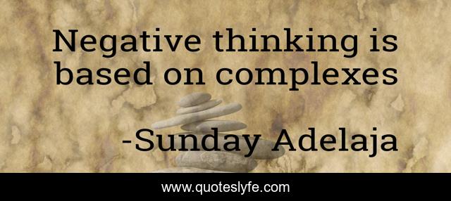 This page presents the quote "Negative thinking is based on complexes". Author of this quote is Sunday Adelaja. This quote is about life, goal, thinking, mission, calling, complexes, negative, purpose,.