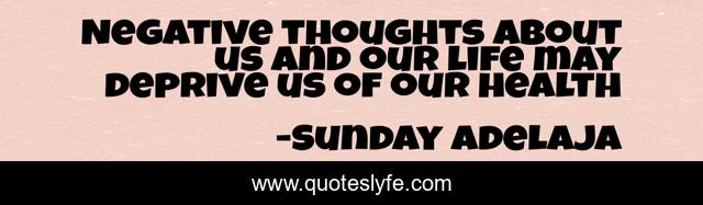 This page presents the quote "Negative thoughts about us and our life may deprive us of our health". Author of this quote is Sunday Adelaja. This quote is about life, goal, mission, calling, deprive, health, negative, thoughts, purpose,.