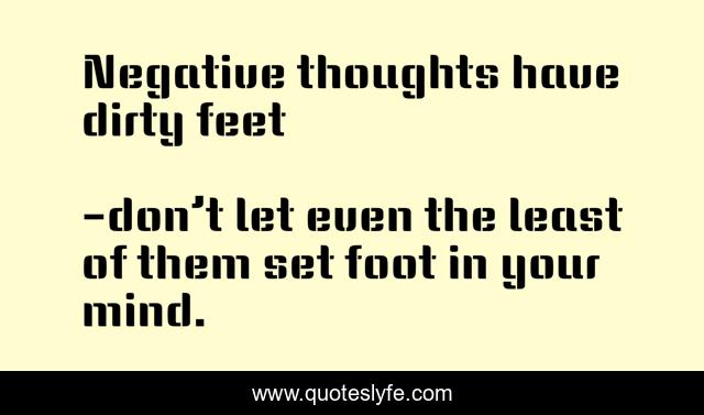 This page presents the quote "Negative thoughts have dirty feet". Author of this quote is don’t let even the least of them set foot in your mind.. .