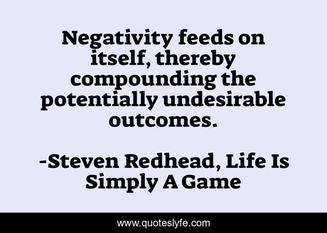 "Steven Redhead, Life Is Simply A Game Quotes." Quoteslyfe.com, 2025. Fri. 05 Dec. 2025. <https://www.quoteslyfe.com/quote/Negativity-feeds-on-itself-thereby-compounding-the-229924>.