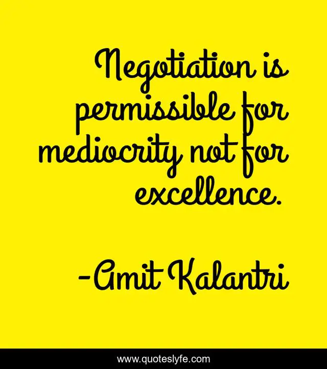 "Amit Kalantri Quotes." Quoteslyfe.com, 2025. Fri. 05 Dec. 2025. <https://www.quoteslyfe.com/quote/Negotiation-is-permissible-for-mediocrity-not-for-99136>.
