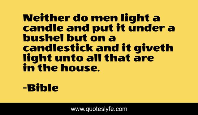This page presents the quote "Neither do men light a candle and put it under a bushel but on a candlestick and it giveth light unto all that are in the house.". Author of this quote is Bible. .