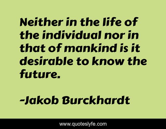 This page presents the quote "Neither in the life of the individual nor in that of mankind is it desirable to know the future.". Author of this quote is Jakob Burckhardt. .