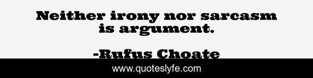 This page presents the quote "Neither irony nor sarcasm is argument.". Author of this quote is Rufus Choate. .