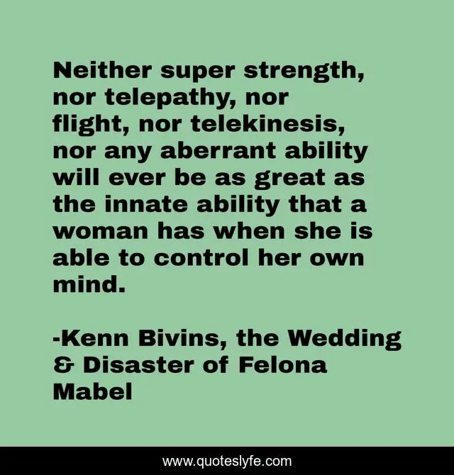 "Kenn Bivins, the Wedding & Disaster of Felona Mabel Quotes." Quoteslyfe.com, 2025. Fri. 05 Dec. 2025. <https://www.quoteslyfe.com/quote/Neither-super-strength-nor-telepathy-nor-flight-104552>.